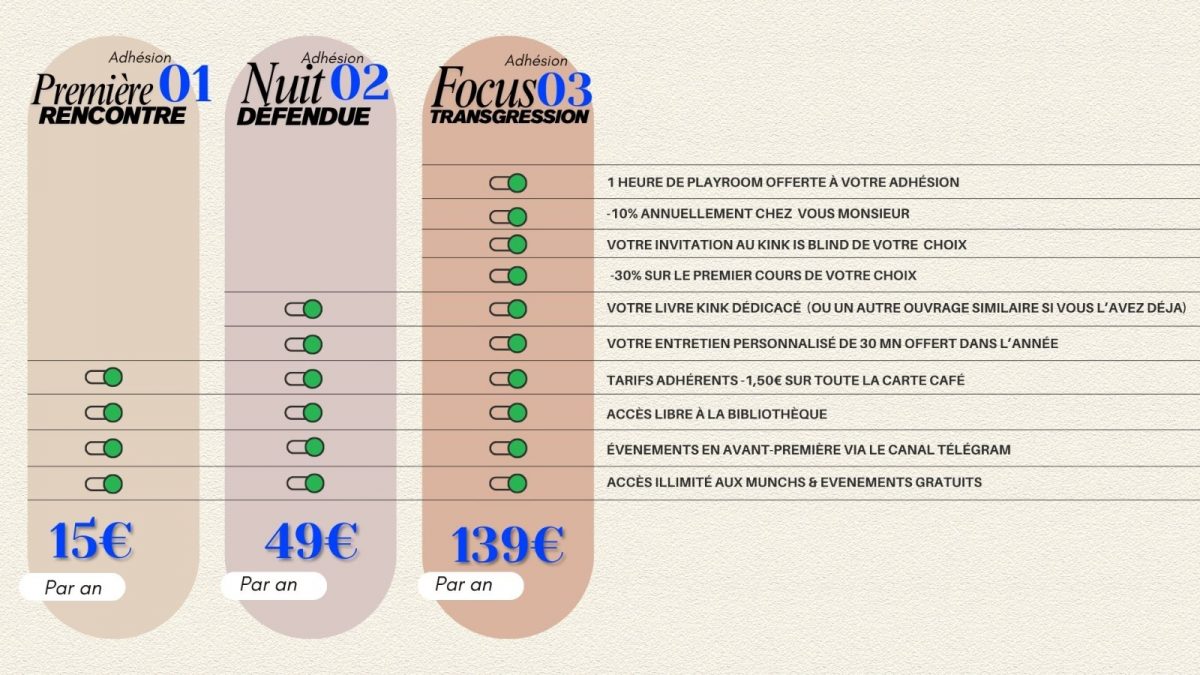 | Accès illimité aux munchs & événements gratuits | ❌ | ❌ | ✅ |